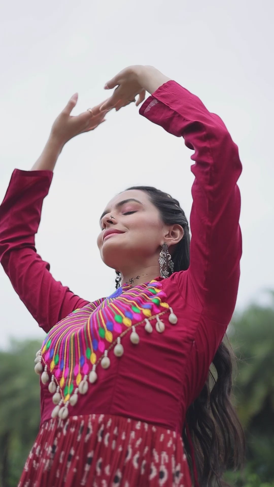 Elevate your navratri celebrations with our stunning maroon printed georgette gown. This designer piece is crafted from heavy printed cotton, beautifully enhanced with intricate kutchi gamthi lace and kodi work. The rich maroon color and detailed embellishments make it a perfect choice for festive events.