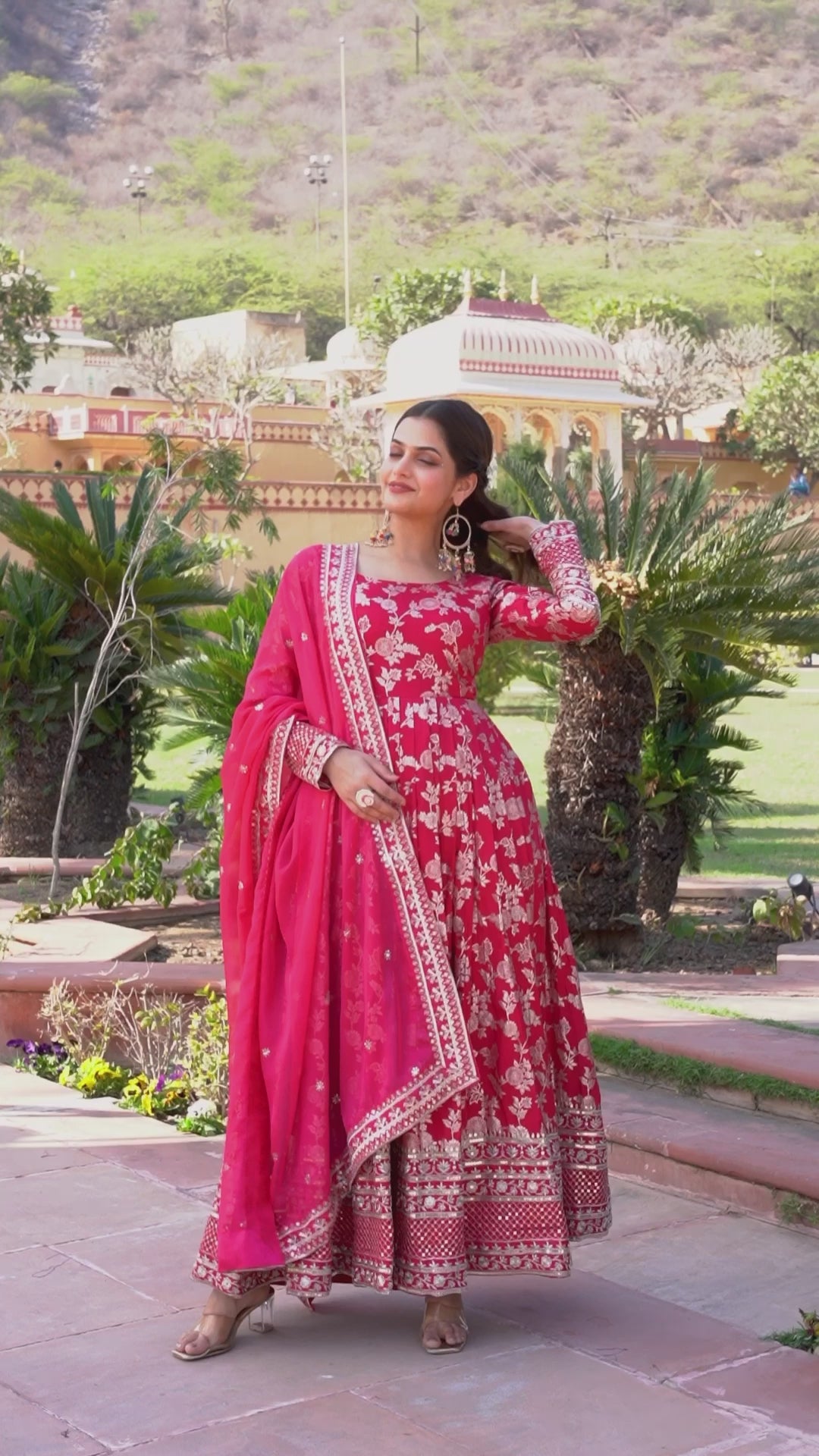 Fantastic Black embroidered jacquard traditional gown with dupatta" - the perfect outfit for any special occasion! This exquisite gown features intricate sequin embroidered work on a luxurious purple jacquard fabric, making it a true showstopper. Paired with a matching silk dupatta adorned with sequin and embroidered work, as well as designer lace details, this gown exudes elegance and sophistication.
