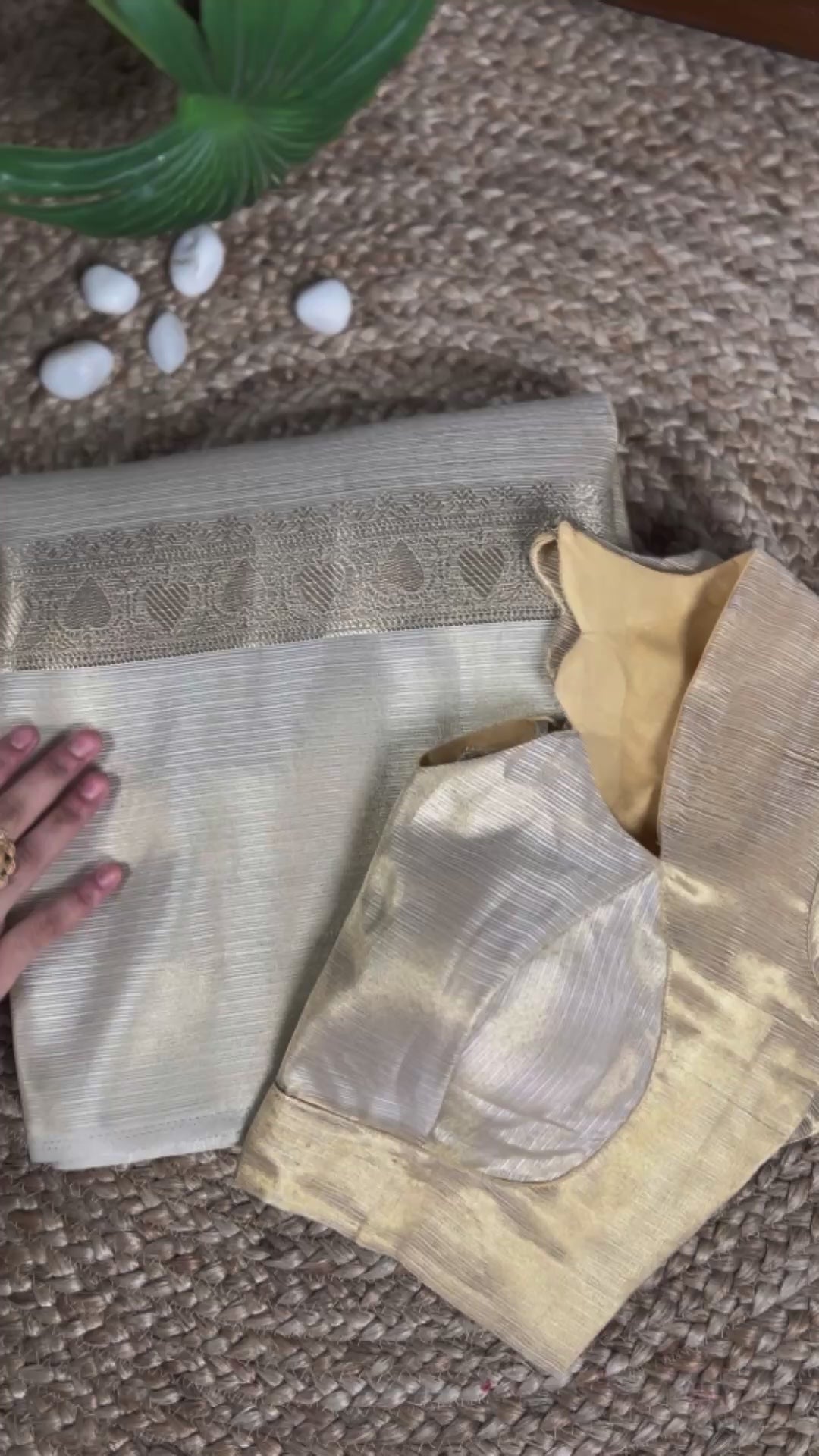 Drape yourself in timeless elegance with our Ivory & Gold Tissue Silk Saree, a perfect choice for celebrations that call for understated luxury. Woven in premium tissue silk, this saree features a soft ivory base beautifully complemented by shimmering golden zari work across the pallu and borders. Its lightweight yet regal texture adds a luminous charm to your overall look.