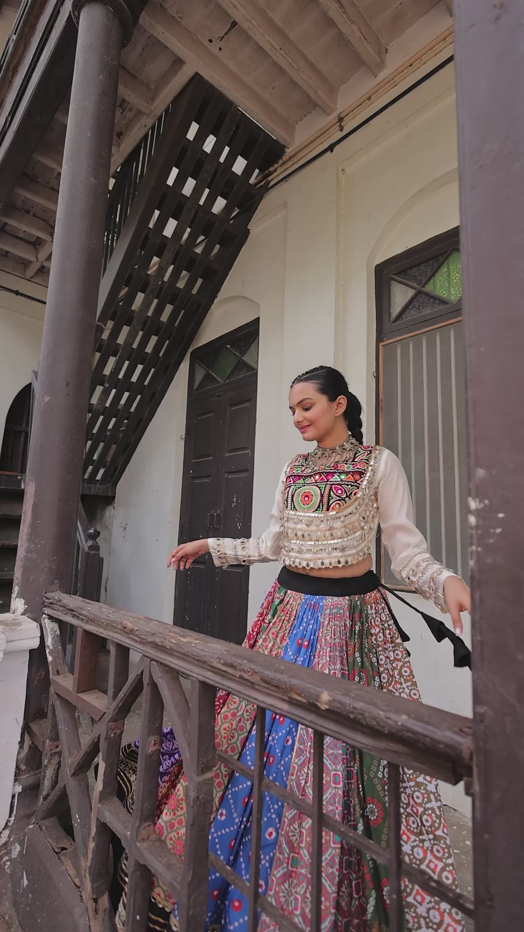 Step into the festive spirit with this stunning multicolor Navratri Lehenga Choli, designed to turn heads this Garba season! Featuring a vibrant patchwork lehenga with a mix of traditional bandhani prints and a detailed mirror-work blouse, this outfit beautifully blends culture with contemporary style. The flowy skirt offers graceful twirls, while the mirror embellishments and gota details add a festive sparkle. Perfect for Navratri, Garba nights, and festive celebrations, this ensemble captures the essence of tradition and elegance.