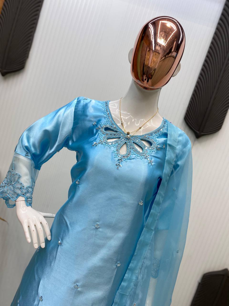 DUPATTA : SEQUENCE EMBROIDERY WITH ORGANZA FABRIC