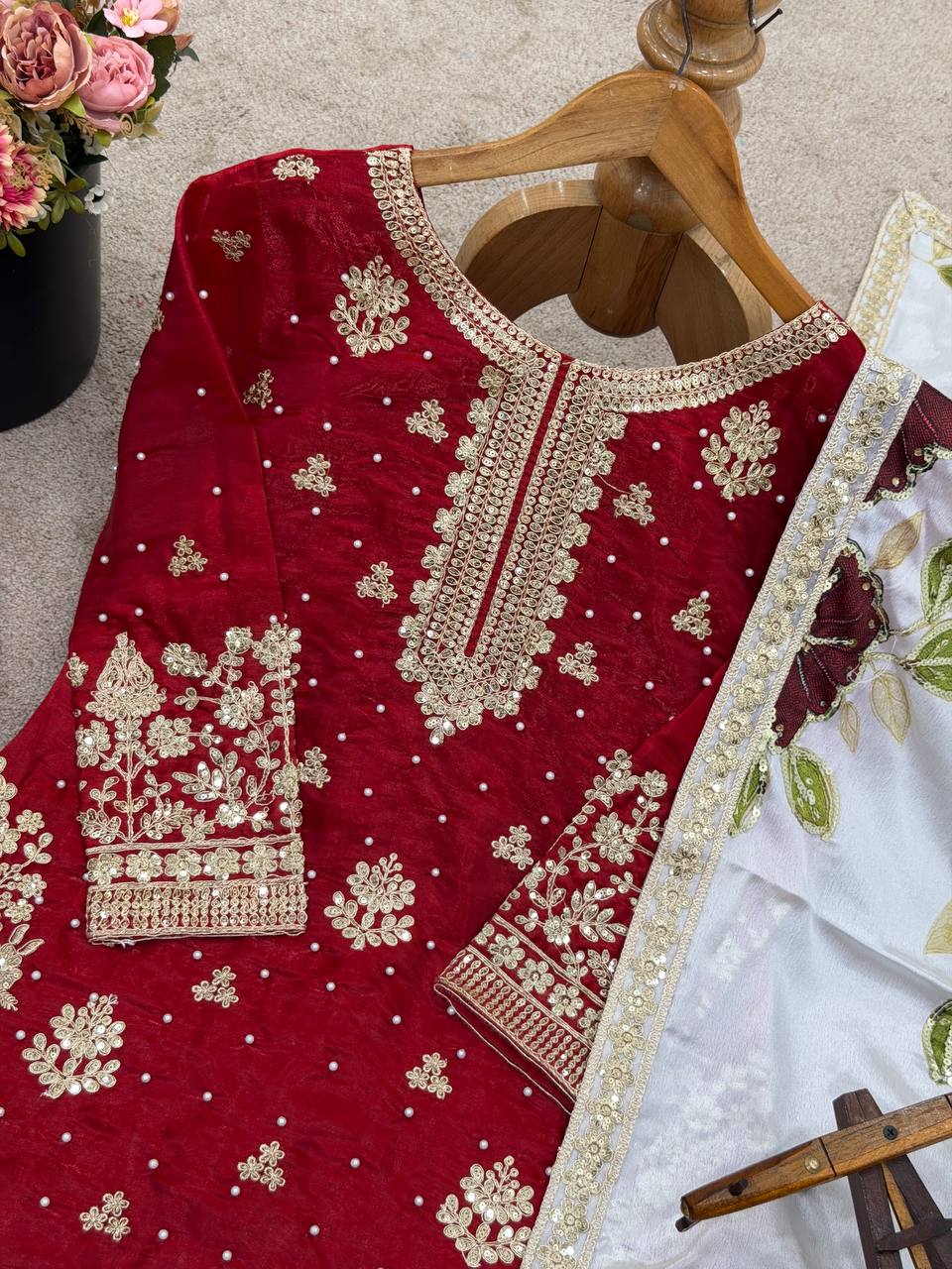 👉🏻 FABRICS & WORK:-Pure GMY SILK With Heavy Embroidery Coding-3mm Sequence Work With Full Sleeve (FULLY STITCHED READY TO WEAR)